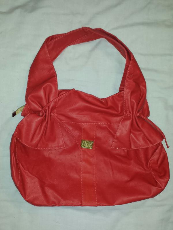 Red leather effect bag, new, 2 shoulder straps, top zip fastening with zip pocket at back, selling for £10...
