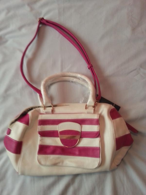 Pink & white striped bag, new with label, detachable adjustable shoulder strap, 2 handles, zip fastening, zip pocket at ...