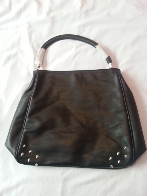 Black Thierry Mugler bag, new without label, single handle, stud fastening, 6 small silver stars at each side of bottom ...