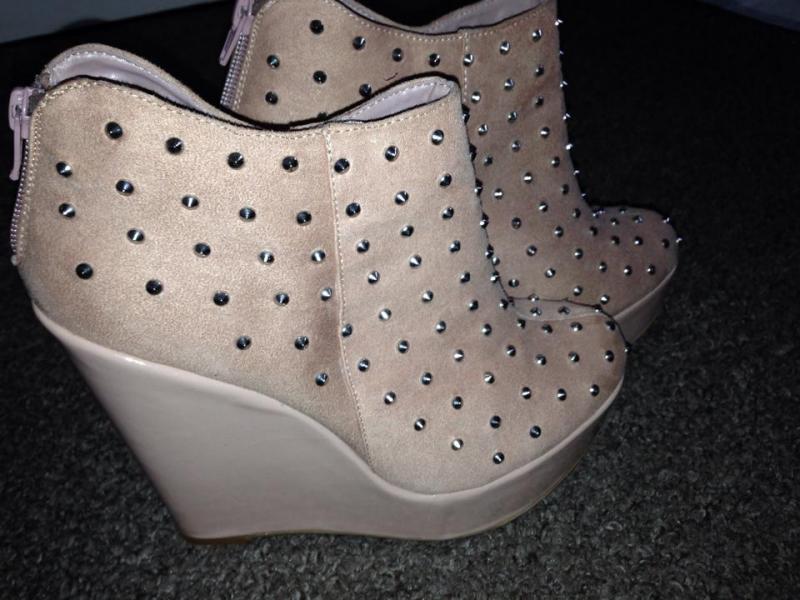 light pink shoe boots, have stud detail all over, platform and wedge heel, zip at back, worn once so in excellent condit...