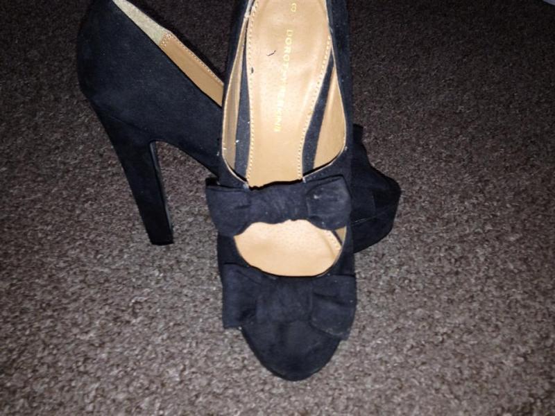 black shoes with bow detail on front, from dorothy perkins, worn once so in excellent condition, size 6...