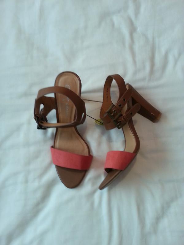 Coral/tan sandals, new with label, double buckle ankle straps, suede look toe band, size 8, from Primark, selling for £...