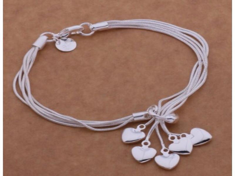 Silver plated multi chain love heart charm bracelet, comes in gift pouch, £8 each...