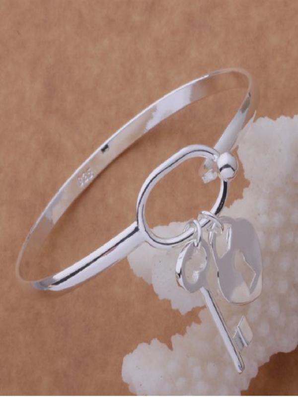 Bangle with padlock & key charms, silver plated, comes in gift pouch, selling for £5, 5 in stock...
