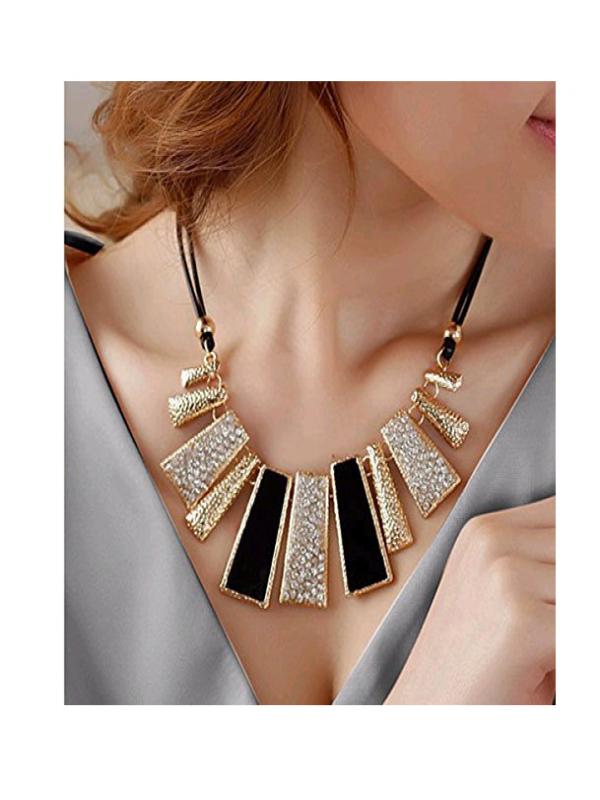 Black/gold/diamonte costume necklace, black lace style chain, new, comes in gift pouch, 4 in stock, selling for £6 each...